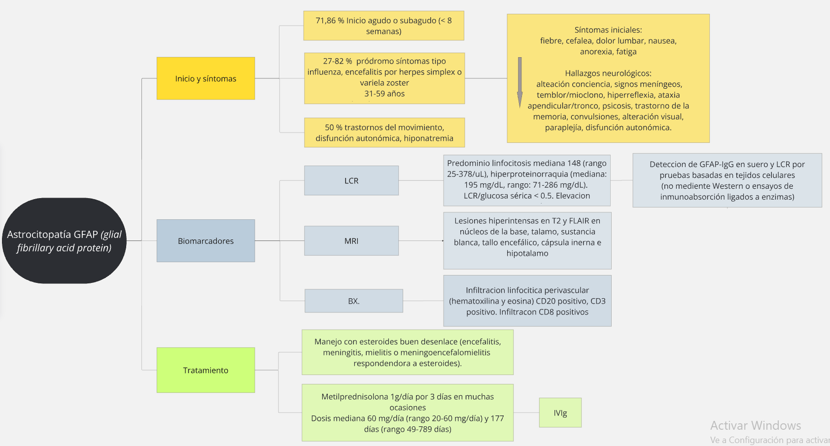 10.3389/fimmu.2018.02802 (A) Anormalidades extensas de la sustancia blanca periventricular; (b) realce linear perivascular perpendicular a los ventrículos; (C,D) realce tipo vascular; (E,F) alteraciones protuberancia y realce de la pia; (G) lesión cervical y torácica.