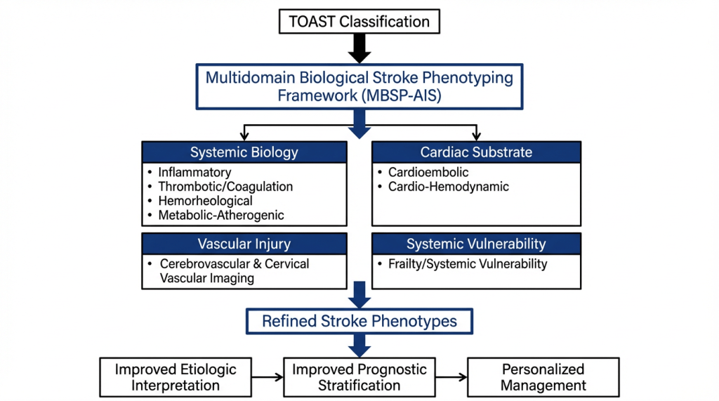 El modelo de Fenotipificación Biológica Multidominio en ACV Isquémico (MBSP-AIS) surge como una evolución conceptual del trabajo desarrollado en mi investigación doctoral, orientada a identificar biomarcadores asociados al pronóstico funcional en pacientes con ataque cerebrovascular isquémico agudo.